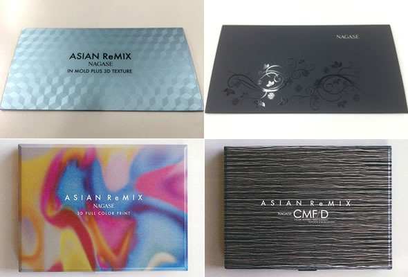 展示内容は、奥行き感やテクスチャーを感じるインモールド加飾、3D加飾印刷、新規黒色光輝材ブラックダイヤモンドの展示をさせて頂きます。