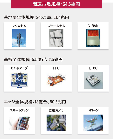 一つは新規材料・プロセス開発により、新たな基地局に使われる基板や、スマートフォン、監視カメラ・ドローンといった各種エッジデバイスに使われる部材・工法・設備のビジネスに深く関わっていきます。