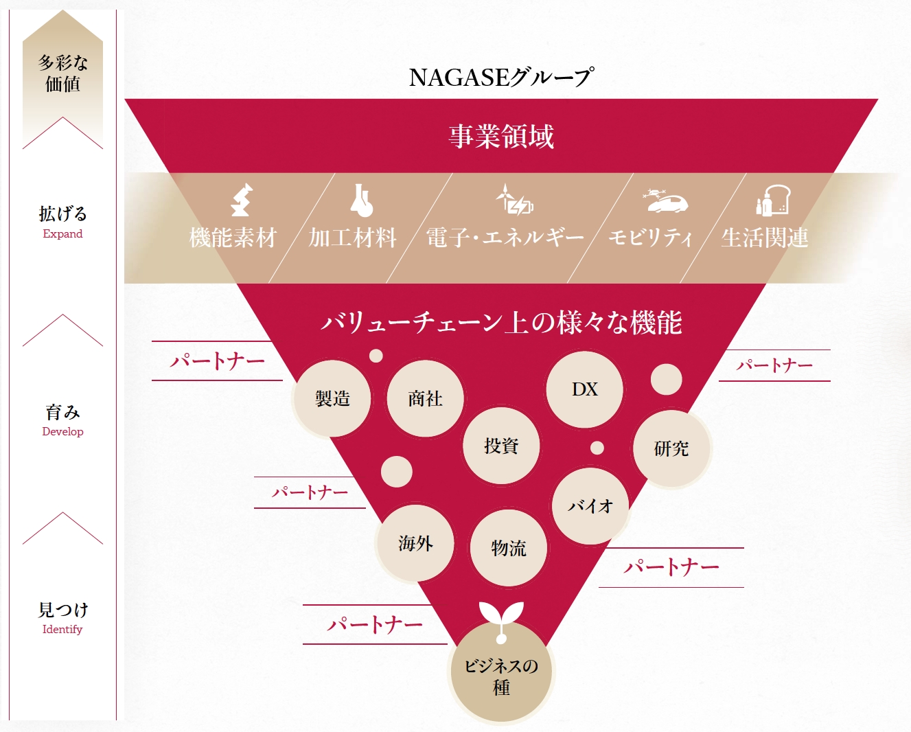 1832年、初代長瀬伝兵衛が京都・西陣で紅花や布海苔、澱粉を扱う問屋「鱗形屋(うろこがたや)」を創業。これが現在まで続くNAGASEグループの歴史の始まりです。その後、合成染料の取り扱いを開始したことで、化学業界での基盤を確立しました。