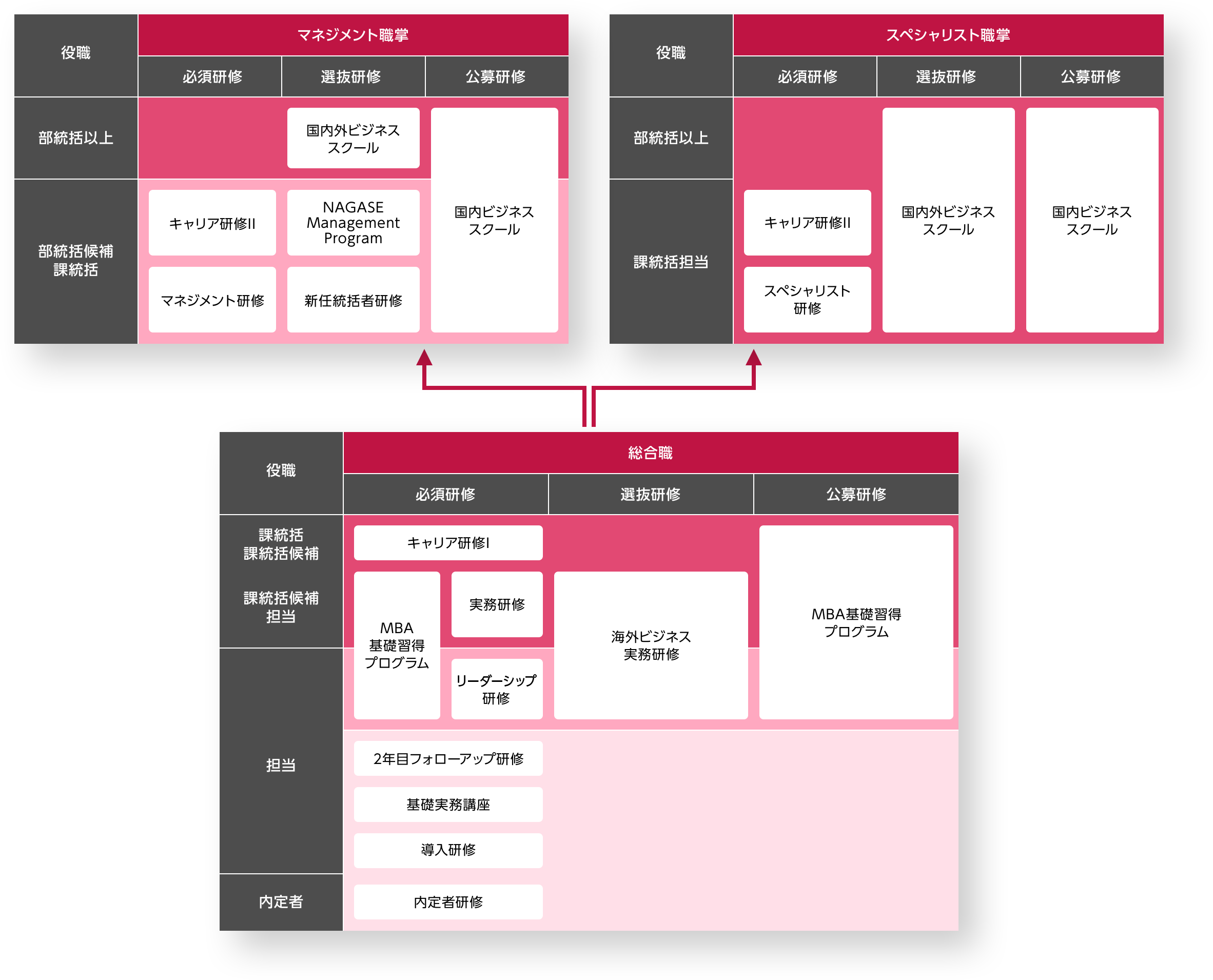 NAGASEグループ全体を理解するための事業部・会社説明、関係会社工場見学に加え、社会人として知っておくべきビジネスマナーについて学び、配属後の勤務開始に向け準備するための研修。