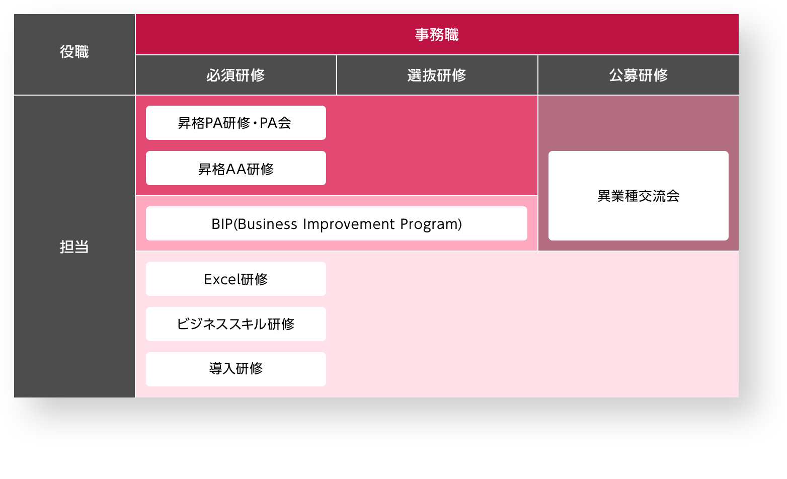 過去1年間の業務を振り返ったうえで、今後、担当業務をスムーズに進めるうえで必要な知識を習得する研修。