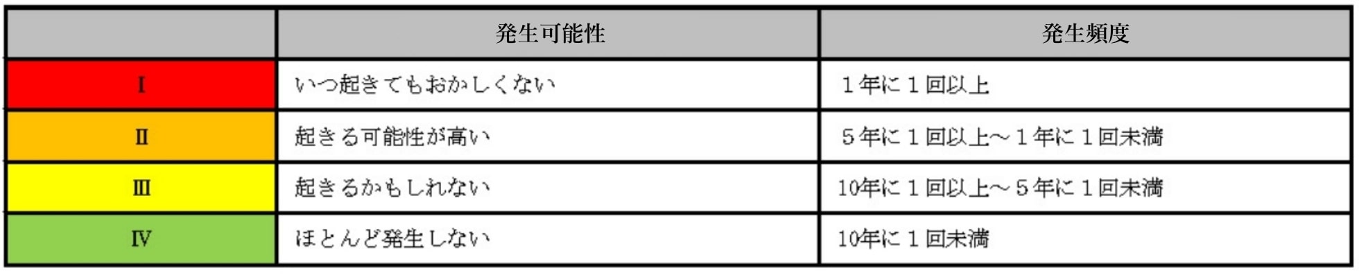 発⽣頻度・可能性も4段階の評価基準を設定しています。